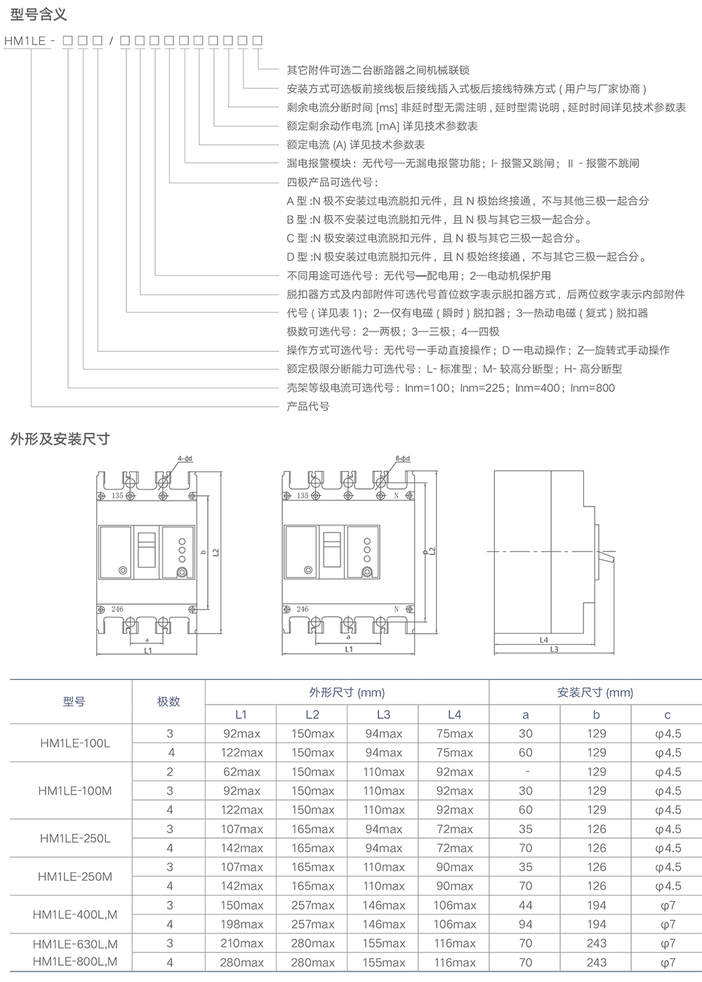 HM1LE塑殼漏電式斷路器
